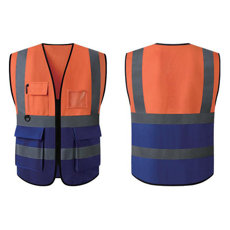 Ang four-bar multi pocket color blocking zipper reflective vest ay nilagyan ng apat na reflective strips, matalinong ipinamahagi sa dibdib at likod, na epektibong nagpapabuti sa visibility ng nagsusuot sa gabi o sa mababang ilaw na mga kondisyon, kaya lubos na nagpapahusay sa kaligtasan. Ang maraming bulsa ay nagbibigay ng karagdagang kaginhawahan para sa nagsusuot. Ang iba't ibang pangangailangan tulad ng mga mobile phone, susi, kasangkapan, atbp. ay madaling dalhin nang hindi nangangailangan ng karagdagang mga bag o backpack, na ginagawang mas maginhawa ang mga aktibidad sa labas. Iba sa tradisyonal na reflective vests, ang vest na ito ay gumagamit ng makulay na disenyo ng bloke, na ginagawang mas sunod sa moda at personalized ang pangkalahatang hitsura, na nagdaragdag sa pakiramdam ng nagsusuot ng fashion at personal na kagandahan. Ang makabagong disenyo na ito ay hindi lamang nagpapabuti sa kaligtasan ngunit ginagawang hindi na nakakabagot ang mga reflective vests at higit na naaayon sa mga uso sa fashion. Ang disenyo ng zipper ay ginagawang mas madali at mas mabilis na isuot at hubarin. Hindi na kailangang hilahin o i-undo ang kumplikadong mga pindutan, hilahin lamang ang zipper nang malumanay upang maisuot at maalis, na makatipid ng oras at pagsisikap. Ang disenyong ito ay hindi lamang isinasaalang-alang ang mga aktwal na pangangailangan ng nagsusuot sa isang emergency ngunit pinahuhusay din ang kaginhawahan at kaginhawahan ng pagsusuot nito.